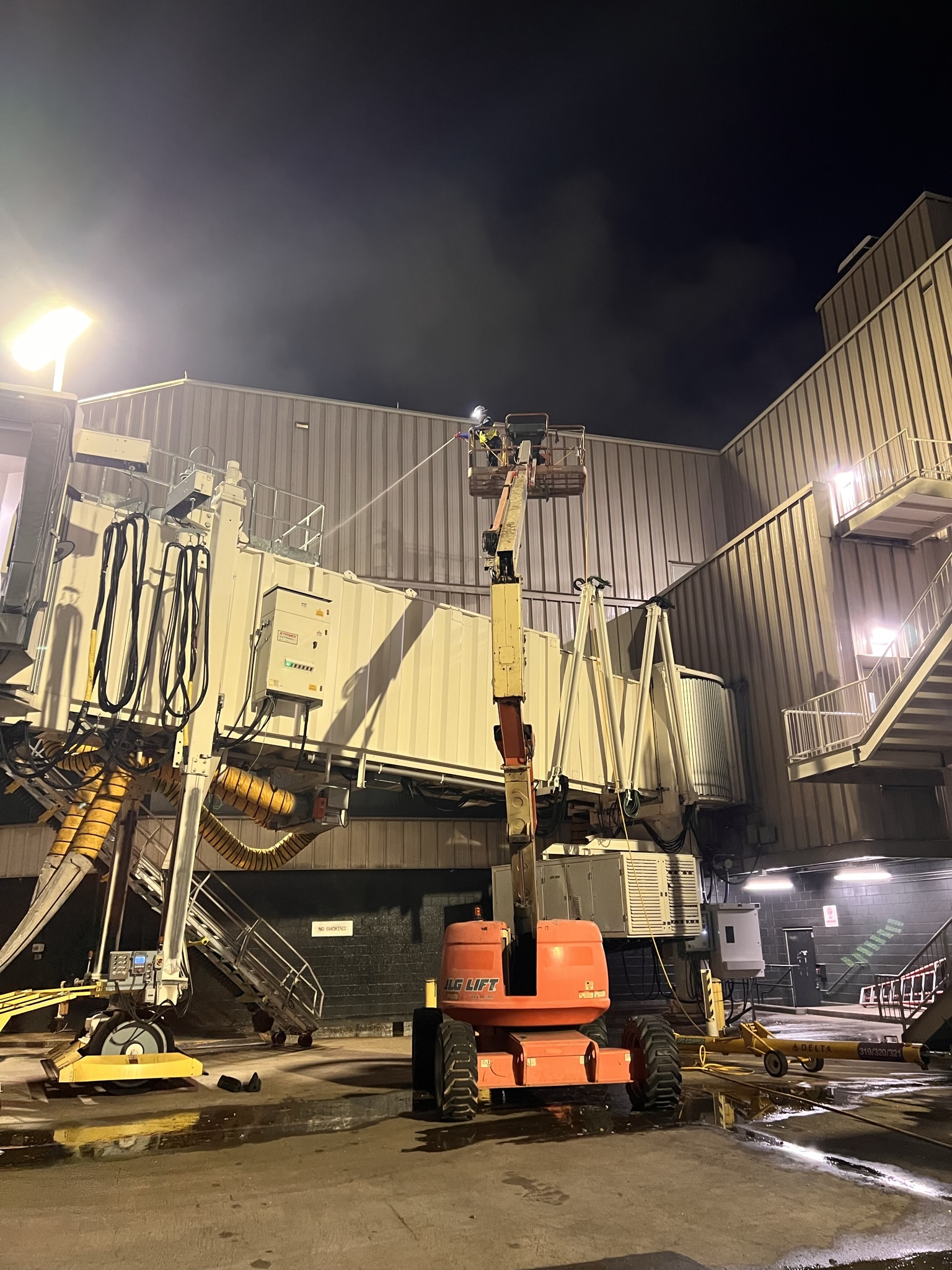 We are part of the crew that is cleaning and renovating Hartsfield-Jackson Atlanta International Airport. This is us pressure washing a part of E Concourse before Rosing Painting takes over with new paint.
