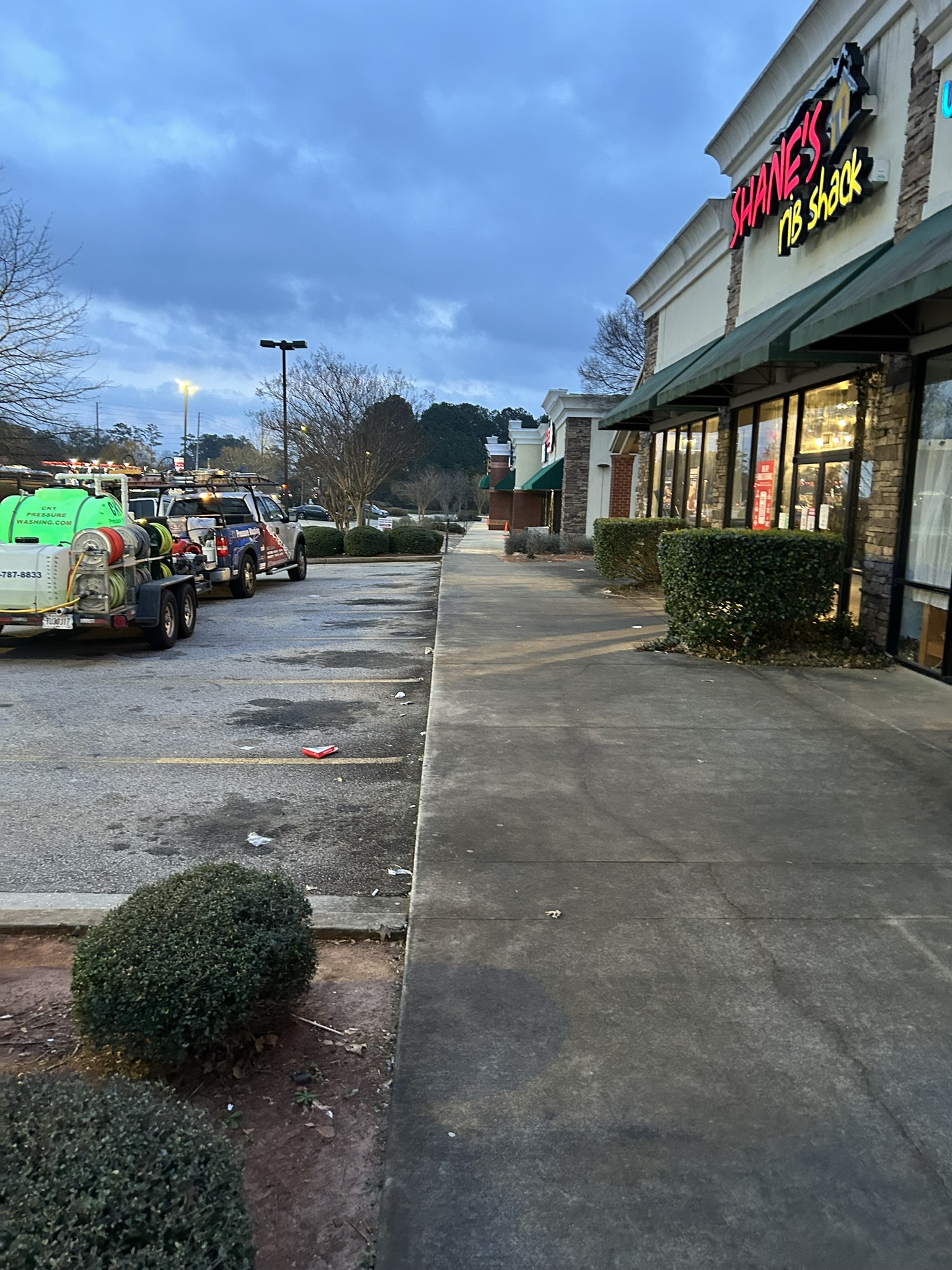Be like this strip mall shopping center in McDonough, GA and contact us today to schedule a storefront pressure washing service.