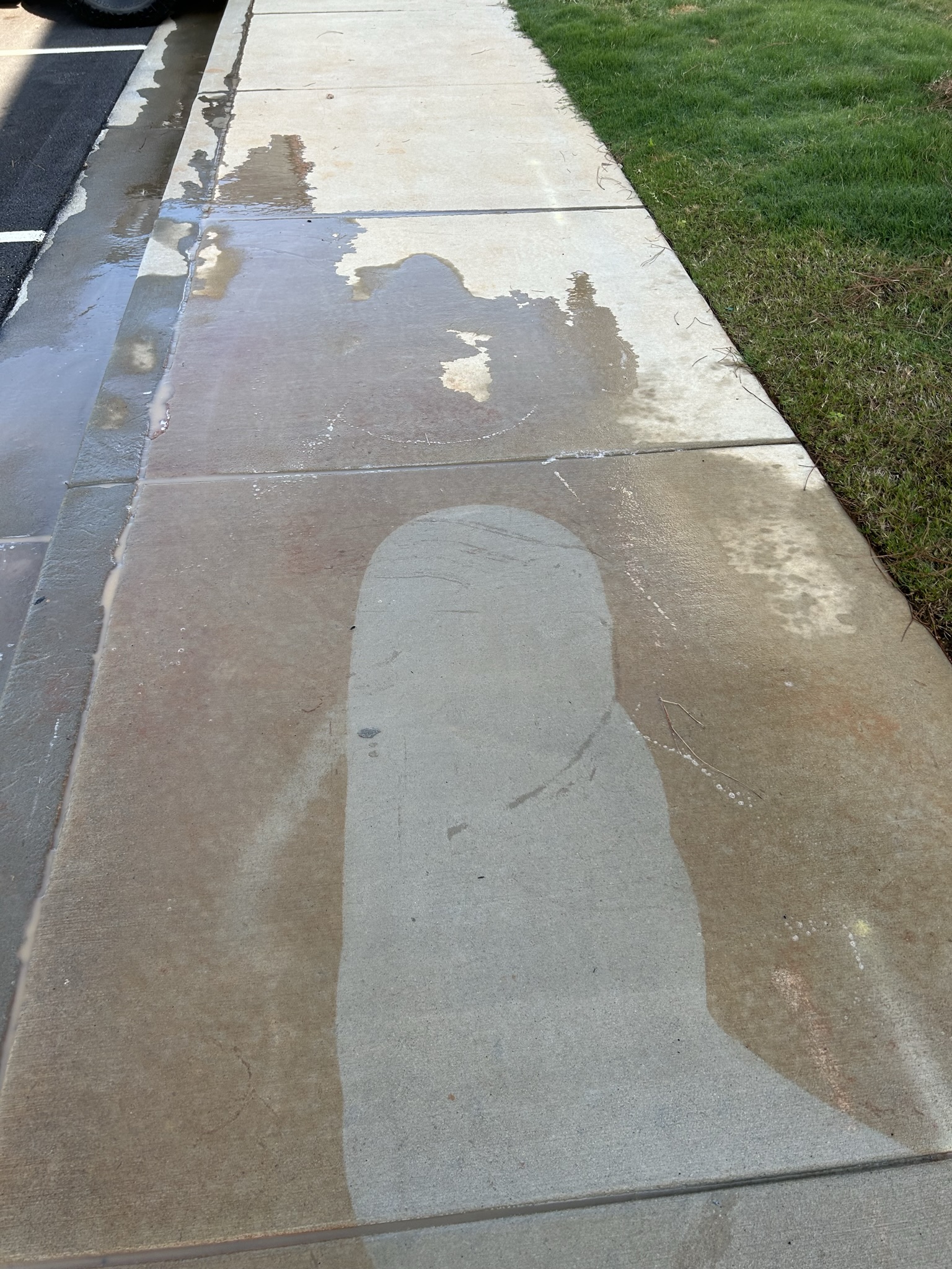 One task we have been asked to do is to clean up the red clay stain on the concrete. Stains on concrete cannot be completely removed but only improved. The reason being that concrete is a very porous substance with tiny microscopic holes. When our infamous Georgia red clay settles on concrete and pernitrates its way deep into the concrete, it stains the inner microscopic walls of the porous concrete and currently there is NO WAY to completely remove the stains. However, with our biodegradable soaps and detergents, we can help improve the look of the concrete. There is typically such a dramatic improvement, it appears that the stain is removed.